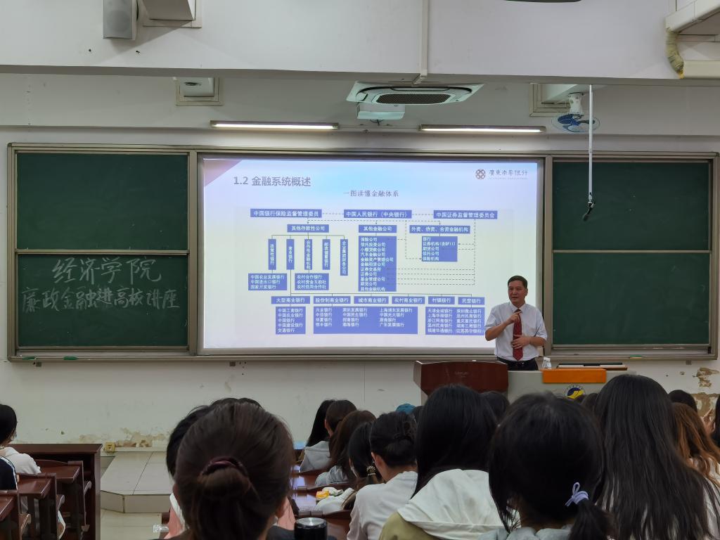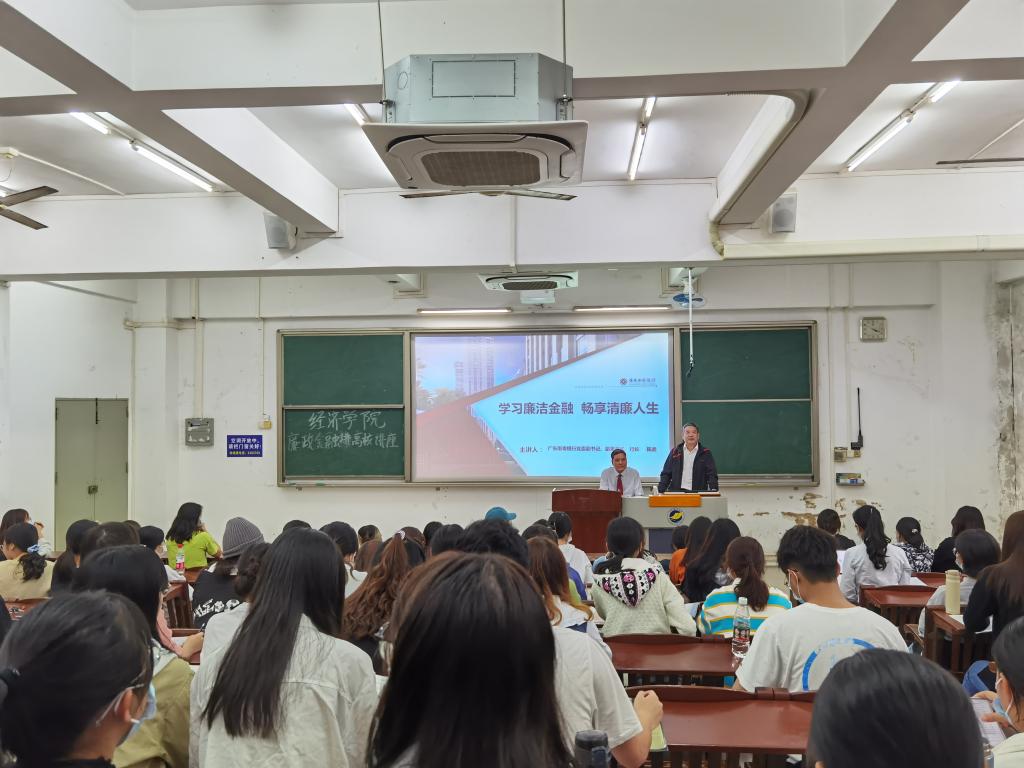 为深入开展清廉金融文化建设,构建清廉金融文化生态,进一步引导学生走好未来人生职业发展之路,10月13日下午,湛江银保监分局与437必赢会员中心在湖光校区钟海楼03020教室共同举办了一场“清廉金融三课”进高校活动。湛江银行同业公会会长、南粤银行党委副书记、副董事长、行长陈武作《学习廉洁金融,畅享清廉人生》主题报告。学院125名本科生参加,报告会由院长居占杰主持。