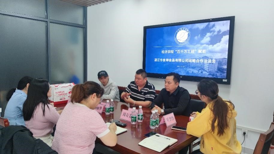 为了扎实推进“百千万工程”与“双百行动”,11月7日,437必赢会员中心在文科楼3号楼710会议室举行“百千万工程”赋能农产品企业战略合作洽谈会。会议由学院副院长杨丽华主持,经济系教师、广东省“百千万工程”农村科技特派员第二轮重点派驻团队负责人周奇美、国贸系教师吕晶晶,团委书记叶梦怡,湛江市食神食品有限公司董事长曹阳霞、副总经理刘国良和电商经理王泽宇参加了会议。