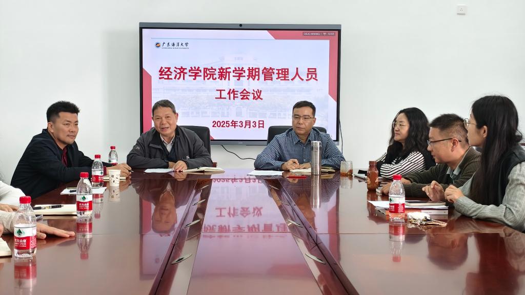 会上,学院领导班子成员在各自分管范围内对新学期工作进行了周密细致的布置。罗帅副院长围绕本学期毕业生论文、培育方案修订、BGA专业认证、实验室建设、智慧课堂课程建设、学科竞赛等工作做了详细安排,鼓励各教学系全力提高专业建设和课程建设质量,提升本科教学质量,助力学生创新创业。杨丽华副院长对今年国家基金、教育部人文社科基金等项目申请、双百工程等社会服务工作、学术交流与灯塔品牌学术沙龙、学位点建设以及今年研究生教育等工作做了具体布置,扎实推进学院有组织科研,鼓励教师组建科研团队、积极突破重点科研项目申报,提高学院科研水平与研究生培养质量的目标。学院党委副书记钟桂安对分管的学生思想政治教育、团委学生会、就业创业、访企拓岗、工会、纪检等工作做了周密部署,为加强教职工凝聚力做坚强后盾,为学生成长成才保驾护航。陈伟院长对本学期学院需要重点完成的工作做了布置,要求全体行政人员改进工作作风,做好各类成果的日常积累,强调了人才引进、专业建设、学科竞赛、对外交流、校友工作和海洋经济特色等具体工作的重点要点。学院党委书记陈创强调本学期要进一步加强党建品牌建设,加强党建业务融合,加强对外宣传工作,提高党建业务水平,要求党员干部聚焦本学期重点出成绩、出亮点。