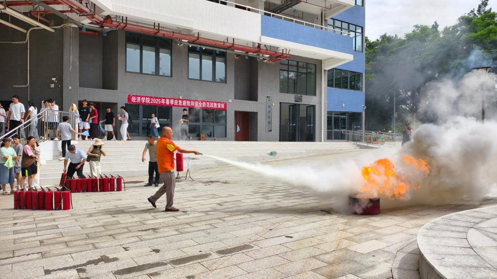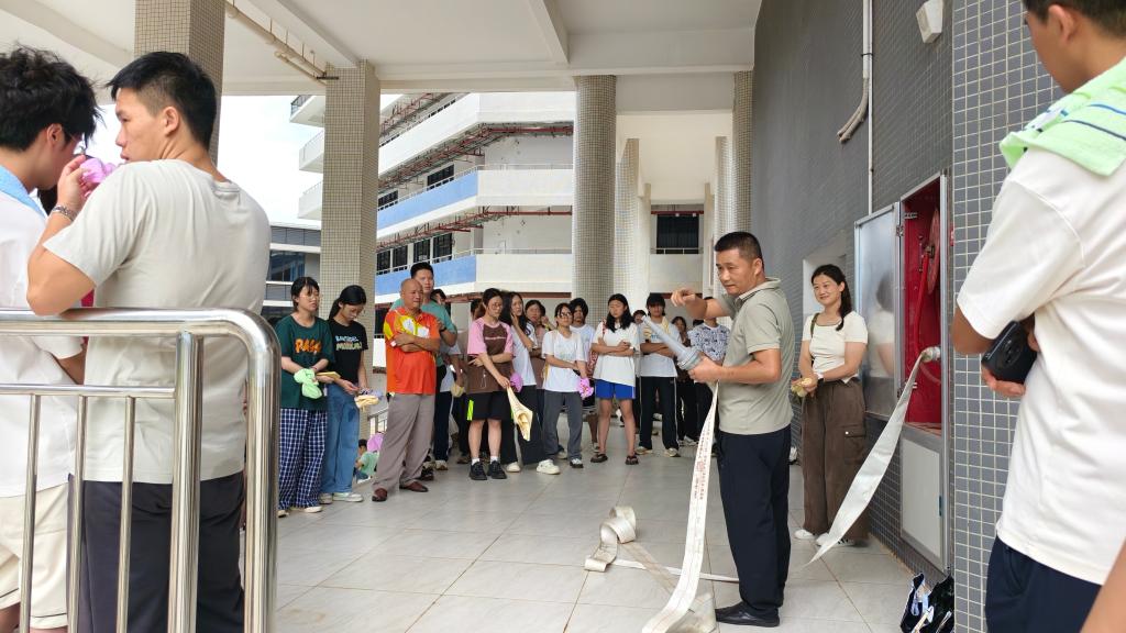 接下来进行了防火器材使用的专题培训。学校保卫部安全管理科林春桥老师带领队员演示了使用灭火毯、灭火器、消火栓等灭火器材的规范流程,强调了使用各种灭火器材的场景和注意事项。学院广大师生代表积极踊跃参与实际操作,练习使用灭火毯、灭火器进行灭火,通过实际操作训练,广大师生进一步掌握了灭火技能。