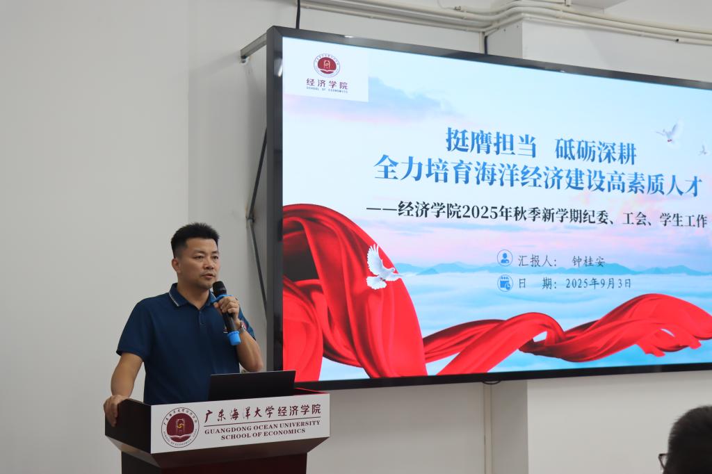正处级辅导员、学院党委副书记钟桂安总结了上学期纪委、工会、学生工作的情况,并对本学期纪委监督、工会、学生思政等重点工作进行了安排。