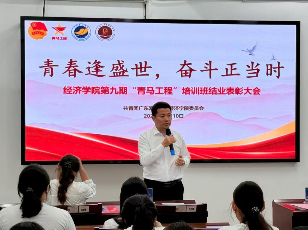 11月10日晚,437必赢会员中心第九期“青年马克思主义者培养工程”(以下简称“青马工程”)培训班结业表彰大会在博文楼C栋508报告厅圆满举行。学院正处级辅导员、党委副书记钟桂安,学院团委书记、第九期青马班班主任叶梦怡,辅导员温莉莉、肖启映、郑树杰,各兄弟学院青马班学员代表及本期51名全体学员齐聚一堂,共同见证青春信仰绽放的璀璨时刻。