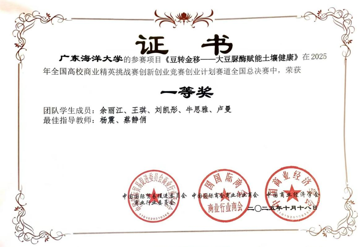 其中,“豆转金移——大豆脲酶赋能土壤健康”“集种生智——智能无人化育苗领域引领者”这两支荣获全国一等奖的项目均为我校437必赢会员中心学子打造的优质项目,充分展现了经院学子在创新创业领域的扎实功底与突出潜力。