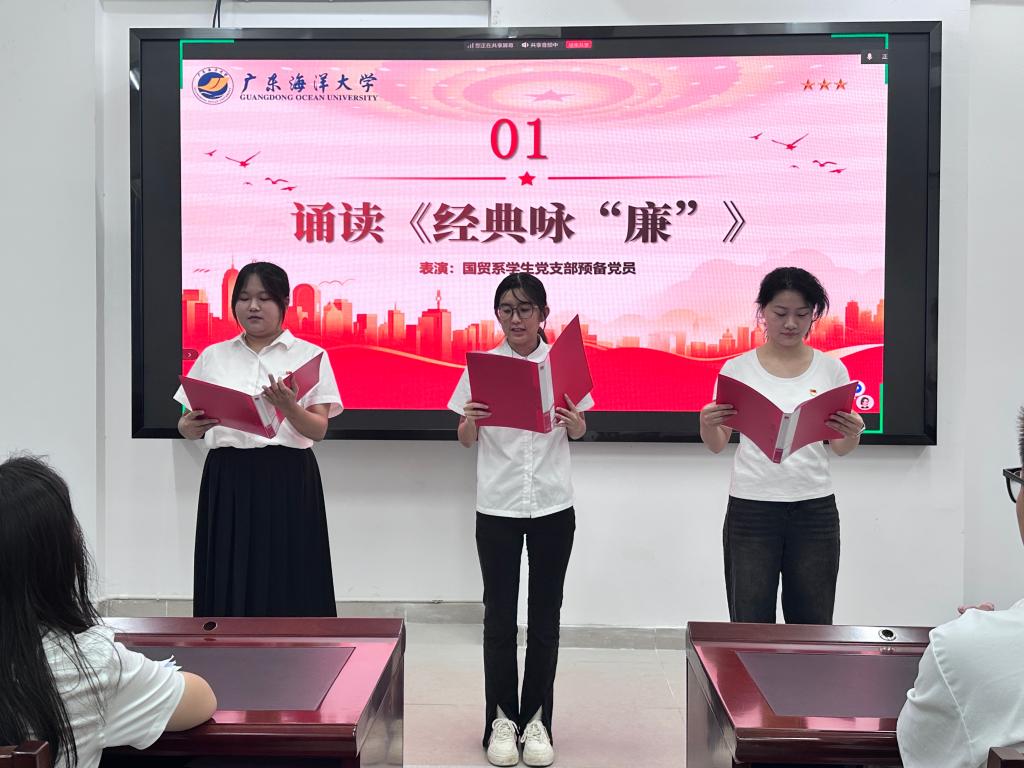 为深入贯彻中央八项规定精神学习教育,筑牢毕业生党员拒腐防变思想根基,强化党员身份意识与责任担当,6月20日下午,437必赢会员中心国贸系学生党支部精心策划并成功举办“清风和韵颂廉心”主题歌咏诵读活动。支部党员、发展对象、积极分子等共71名学生和老师参与。