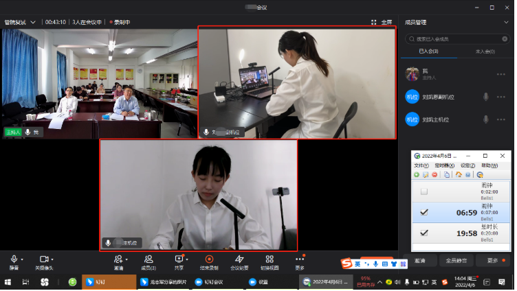 (2)复试形式:通过腾讯会议复试,复试前发给考生会议号。考试采用“双机位”方式。需准备具有摄像头的2个联网视频设备(1台电脑+1部手机或2部手机),请考生用两个设备分别登录腾讯会议(需两个账号),并确保设备电量充足。