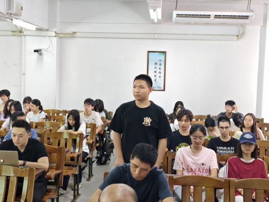 图 3系主任刘宏楠主持会议、回复学生问题