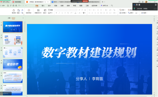 广东力拓科技有限公司李育苗经理结合以往工作经验,向与会老师分享数字教材建设规划与智慧课程操作的经验。李经理针对数字教材的建设价值、建设层级、建设流程、实施方案等四方面内容,进行详细说明;结合超星学习通平台,展示智慧课程知识图谱制作、智能体使用等功能,并针对操作要点与细节进行系统阐述。