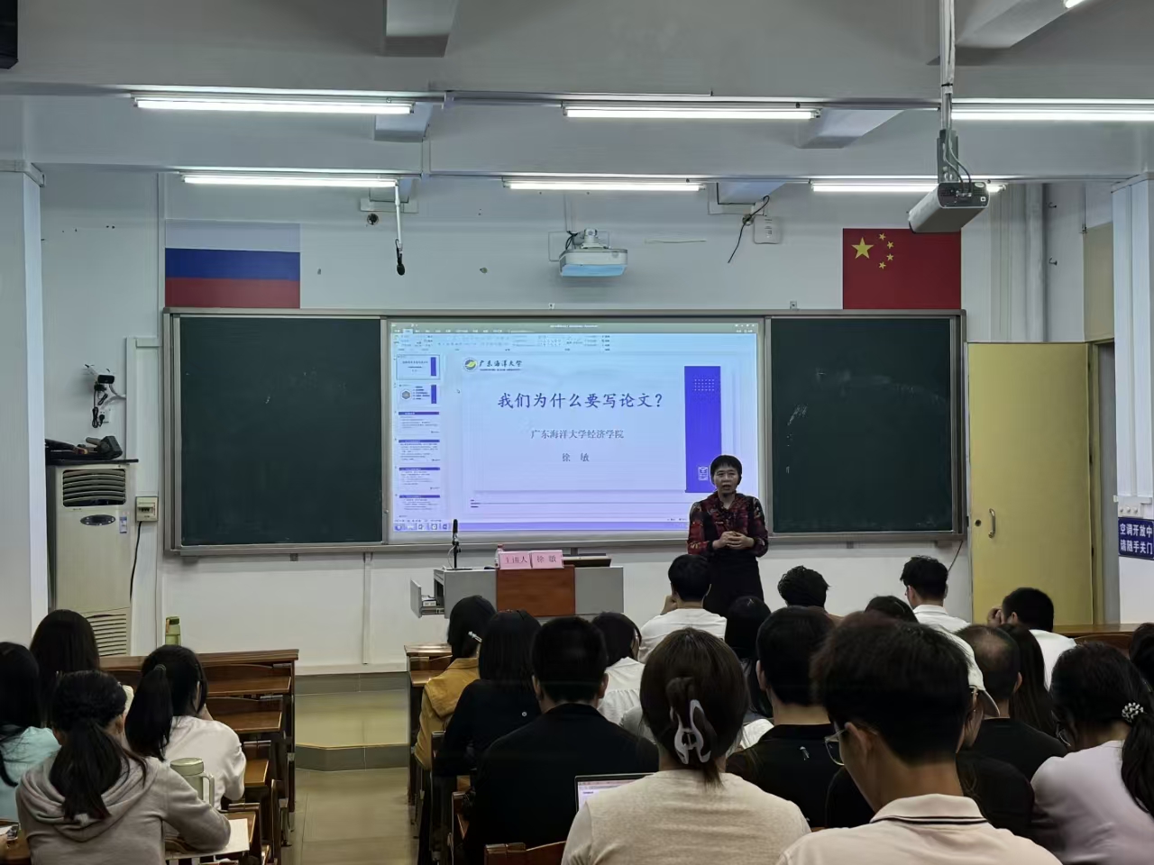 徐敏教授以“我们为什么要写论文”为题,根据论文体裁设计和基本要求,从标题、摘要、关键词、正文等方面详细分析了撰写要求和细节,介绍了文献检索和资料收集的方法。徐敏教授指出,写论文可以培养五大能力,一是逻辑思维能力,以严谨和精准的态度学会做人做事;二是解决问题能力,以论文撰写延伸解决人生难题;三是执行能力,注重积累积极行动;四是分析选择能力,通过比较选择正确的路径;五是坚毅能力,持之以恒终有收获。徐教授对研究生们提出三点希望:要注重提升自身能力和素养,提高与目标职业的匹配度;要降低对职业的期待和要求,从低点逐步攀升,稳步前进;要注重终生学习,热爱阅读和积累。强调同学们要相信未来,全力以赴,静下心态,脚踏实地,做一个有心人。