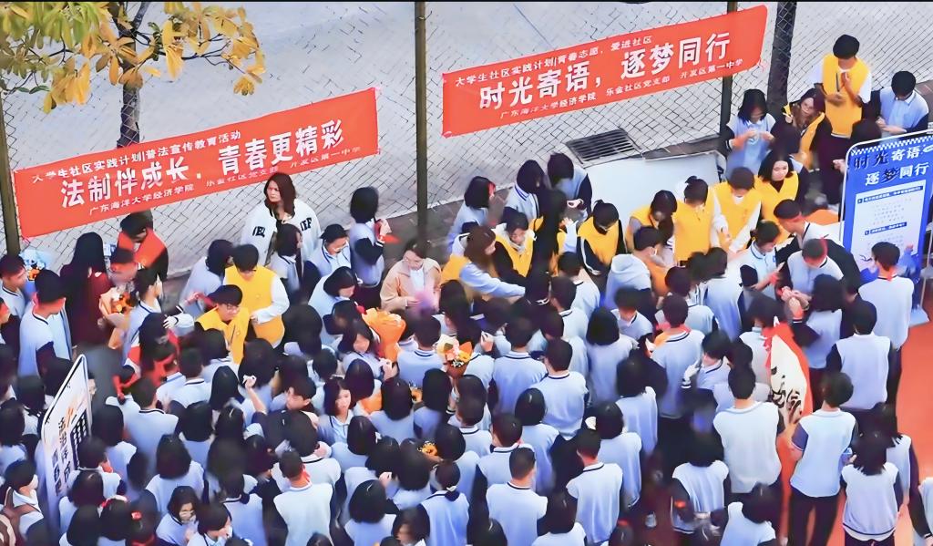 近日,为积极响应学校首届校园法治文化节活动的号召,437必赢会员中心联合乐华街道乐金社区党支部在经开区第一中学举办了“时光寄语,法护青春”志愿服务活动。本次活动由437必赢会员中心学生党支部党员、团学骨干组成志愿服务队,面向初中生进行普法义教,引导他们懂法守法,共同建设和谐校园。