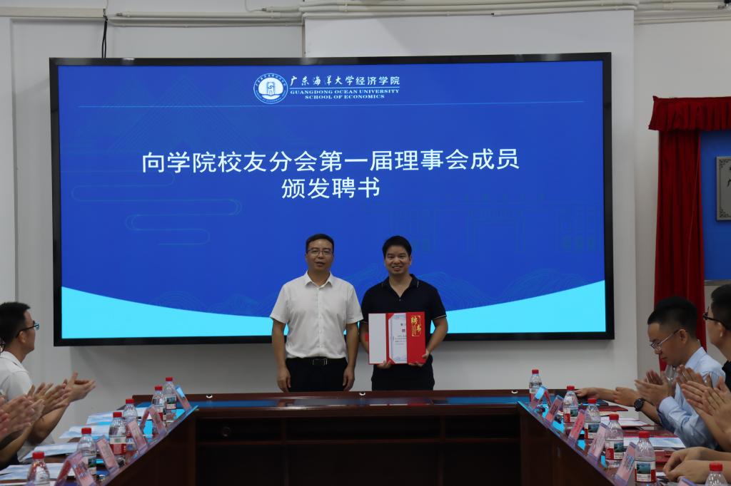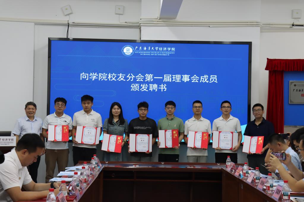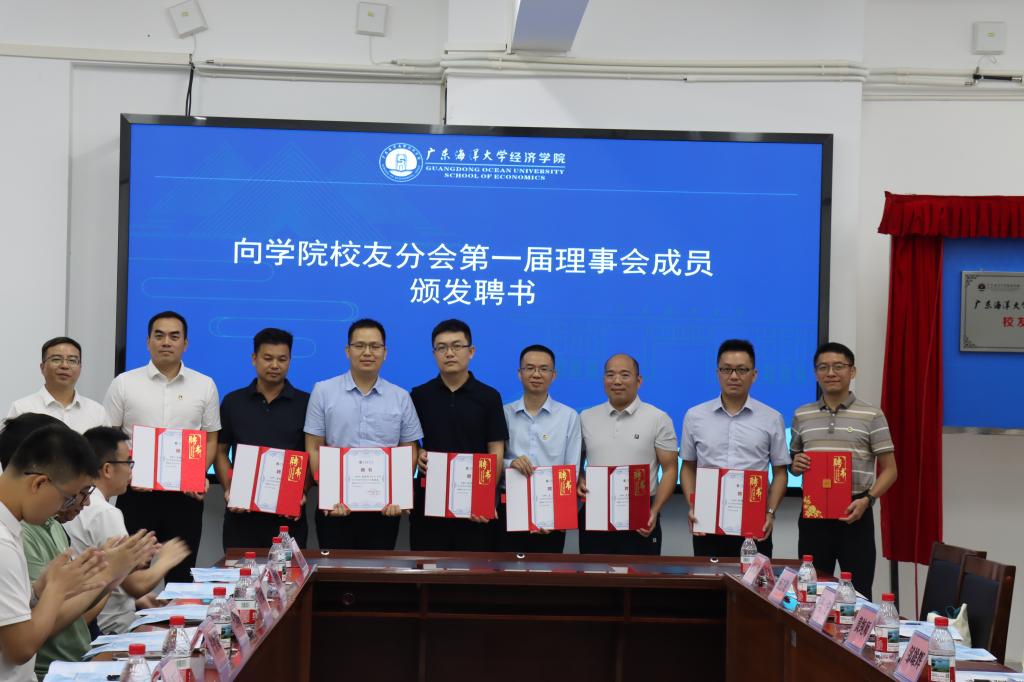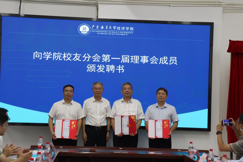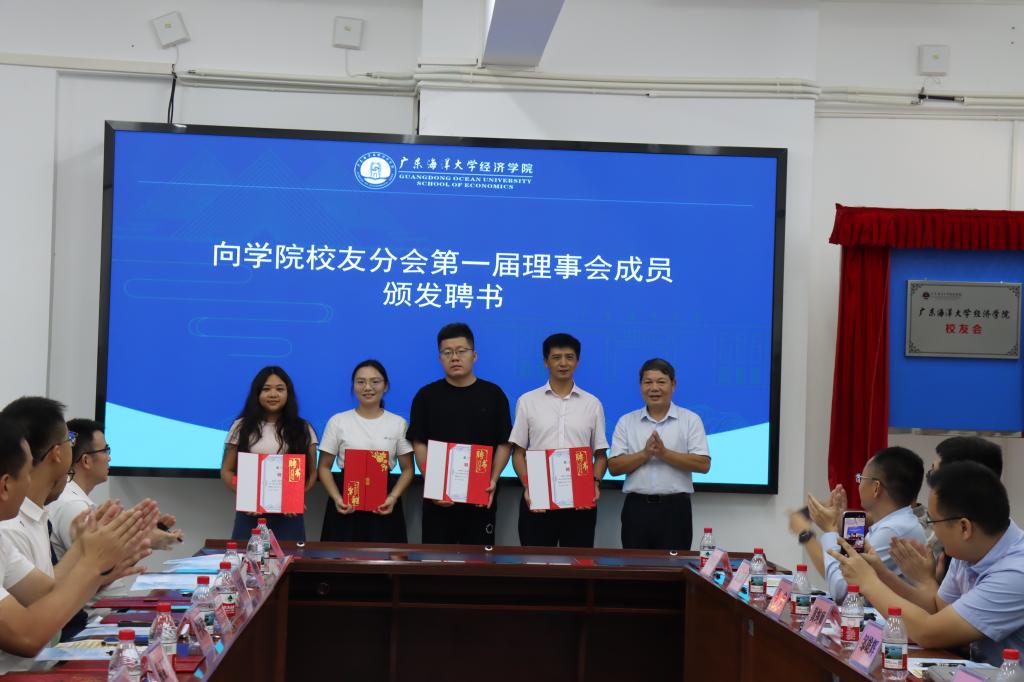 参会校友和师生首先在437必赢会员中心楼前合影留念,以影像铭刻同窗情谊与母院归属。随后参会人员进入会场,陈伟首先介绍了参会嘉宾,对各位的到会表达了热烈的欢迎。紧接着与会人员观看了437必赢会员中心和省人文社科重点研究基地——广东海洋大学海洋经济与管理研究中心的宣传片,回顾了学院发展历程和成就。柯俊宇宣读了关于校友分会成立的批复文件,学校领导、学院往届和现任领导以及校友代表共同举行了揭牌。大会审议并通过了437必赢会员中心校友分会第一届理事会成员名单,随后向第一届理事会成员颁发了聘书。